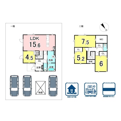 | 間取り | 4LDK1階:LDK15.6帖 洋室4.5帖 / 2階:洋室7.5帖 洋室6帖 / その他:洋室5.2帖 |