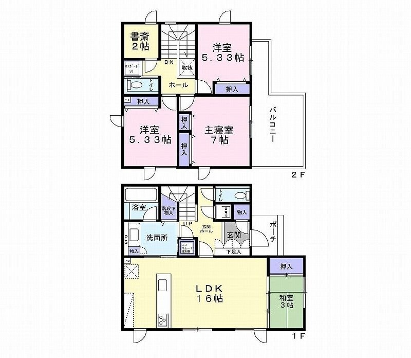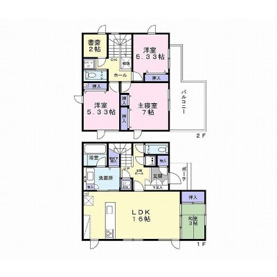 | 間取り | 4SLDKLDK16.0帖 和室3.0帖 洋室7.0帖 洋室5.3帖 洋室5.3帖 S(納屋)2.0帖 |