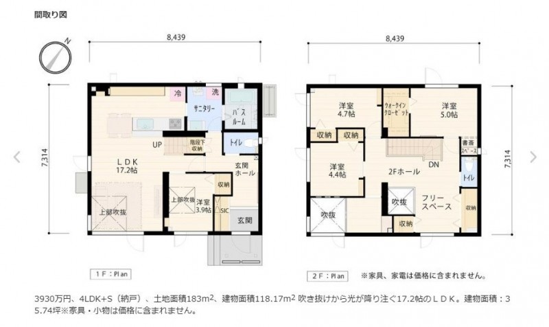 4LDK+S(納戸)・土地面積183m2・建物面積118.17m2 ♪