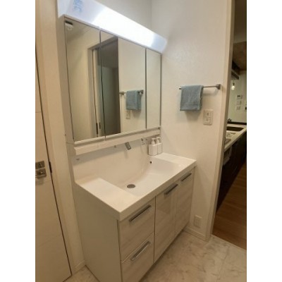 三面鏡付きのワイドタイプ洗面台♪