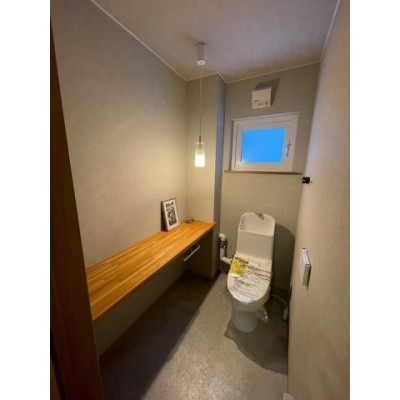 カウンターつきでゆとりある広さのトイレ。