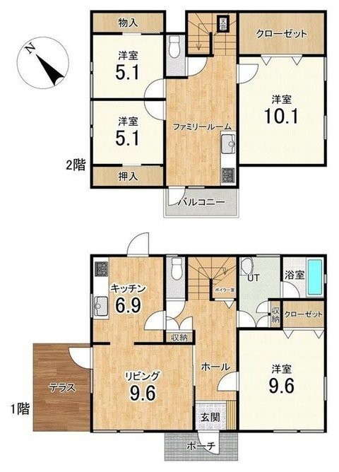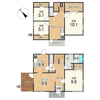 | 間取り | 4LDKL9.6帖 K6.9帖 洋室9.6帖 洋室10.1帖 洋室5.1帖 洋室5.1帖 |