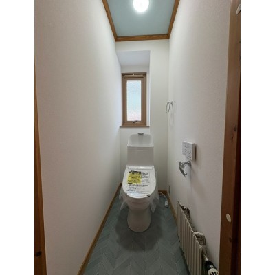 外壁と合わせてブルー基調のトイレオシャレです♪
