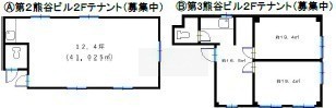 | 現況 | 賃貸中(第2熊谷ビル 2階テナント 募集中 /第3熊谷ビル 2階テナント 募集中) |