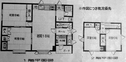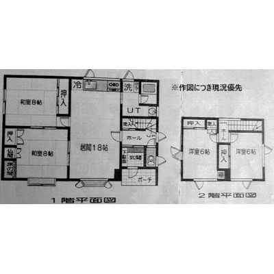 | 間取り | 4LDK1階:LDK18帖 和室8帖 和室8帖 / 2階:洋室6帖 洋室6帖 |