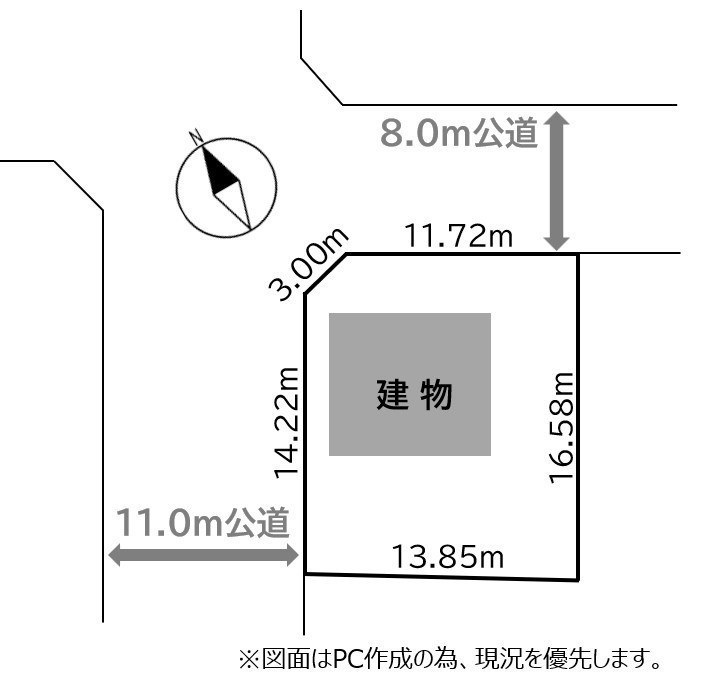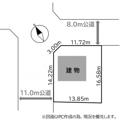 - 北西側幅8.00mの公道に11.72m接道