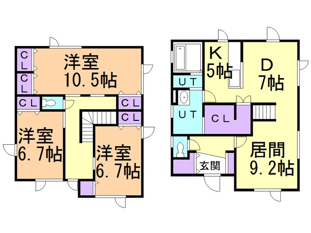 建物の階建 地上2階建 構造 木造 間取り 3LDK1階:L9.2帖 D7帖 K5帖 / 2階:洋室10.5帖 洋室6.7帖 洋室6.7帖 駐車場 あり ※無料 駐車場台数:2台接道状況 一方 - 南西側幅8.00mの公道に11.00m接道 位置指定:無