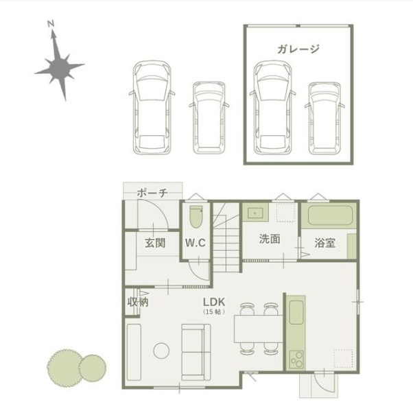 ガレージ2台・屋外2台の計4台 |