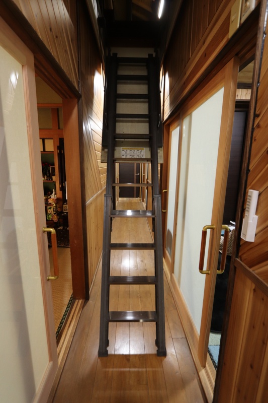 電動ステップを上がると屋根裏収納
