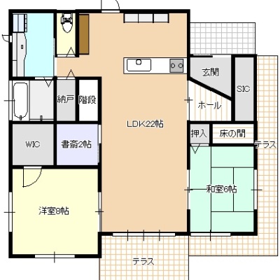 | 間取り | 4LDK1階:和室6帖 洋室8帖 / 2階:洋室5帖 洋室5帖 |