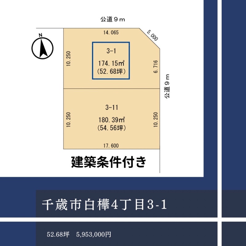 ここに注目!千歳市白樺エリアに、夢のマイホームを叶える建築条件付き住宅用地が登場しました!広々とした174.15㎡(約52.6坪)の平坦な土地で、価格は595.3万円と大変魅力的です。千歳エリアで、これだけの広さと充実した環境が整った土地がこの価格で手に入るのは見逃せません。 バス停「佐々木歯科前」まで徒歩1分と、通勤・通学、お出かけにも便利な立地が嬉しいポイント。JR千歳駅方面へもスムーズにアクセスしていただけますよ。 閑静な第1種低層住居専用地域に位置し、北東と東の2方向が9mの公道に面した開放感あふれる角地です。日当たりや風通しも良好で、明るい住まいをデザインしていただけます。都市ガス、上下水道、電気といった生活インフラも整備済みで安心ですね。 徒歩圏内には、コープさっぽろ(約8分)、ツルハドラッグ(約7分)、セブンイレブン(約8分)が揃い、日々のお買い物に困りません。お子様の通学も安心な向陽台中学校まで徒歩4分、向陽台小学校まで徒歩9分。公園も近く、子育て世代にもぴったりの環境です。 この素敵な土地で、新しい暮らしを始めてみませんか?ぜひお気軽にお問い合わせください!