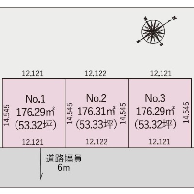 総区画数-/全3区画 接道状況 一方 - 南東側幅6.00mの公道に12.12m接道