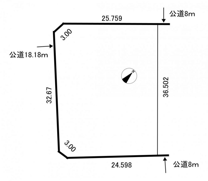 - 北西側幅8.00mの公道に25.70m接道