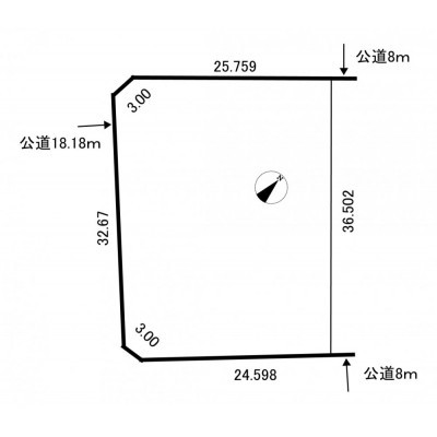 総区画数1区画/全1区画 接道状況 三方 - 南西側幅18.10mの公道に32.60m接道
