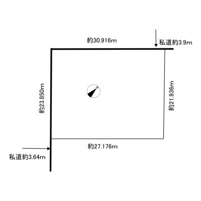 - 北西側幅3.90mの私道に30.90m接道