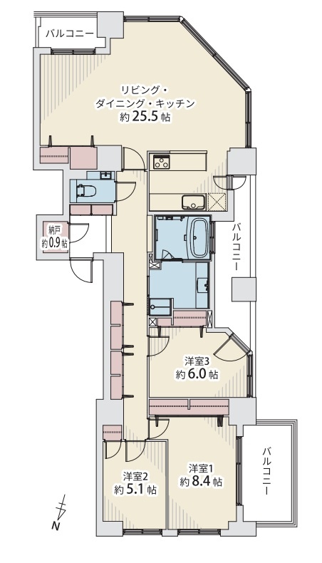 3LDK(109.85m²)└ LDK25.5帖 洋室8.4帖 洋室6帖 洋室5.1帖