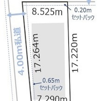 - 北側幅4.00mの私道に17.20m接道