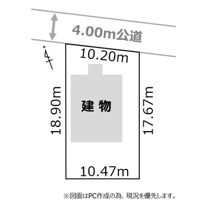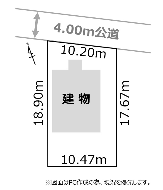 接道状況 一方 - 北側幅4.00mの公道に10.20m接道