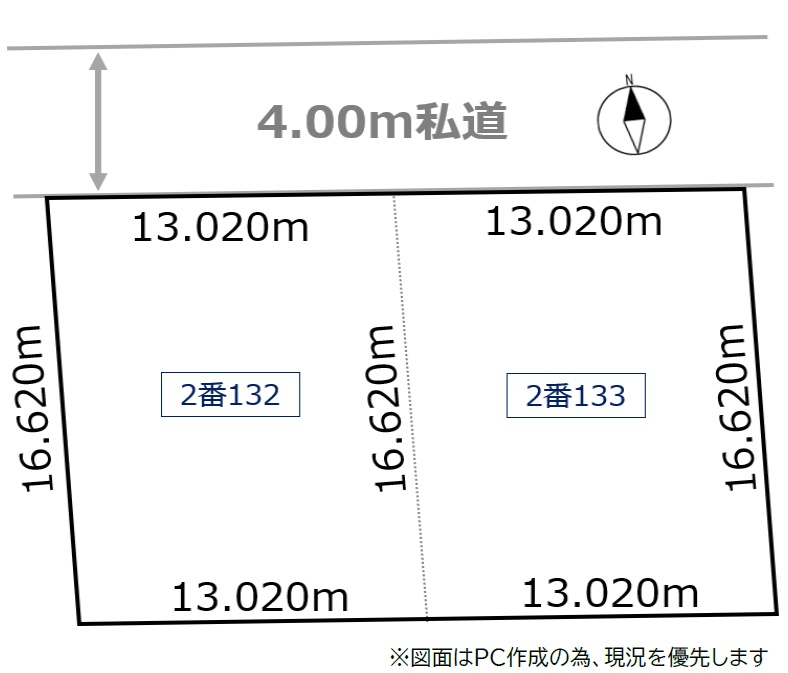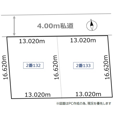 総区画数1区画/全1区画 接道状況 一方 - 北側幅4.00mの私道に26.04m接道