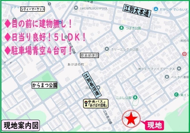 - 中央バス「あけぼの団地」停 徒歩3分