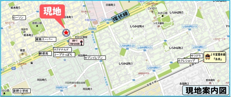 - 糸井駅JR室蘭本線バス5分→ 道南バス 「苫信川沿支店前」停徒歩2分