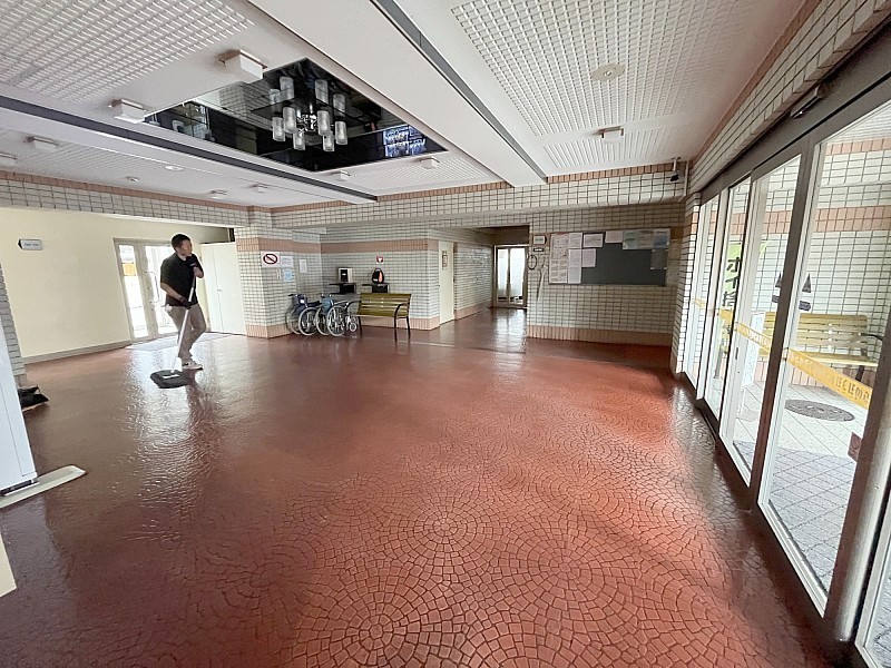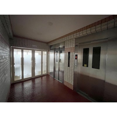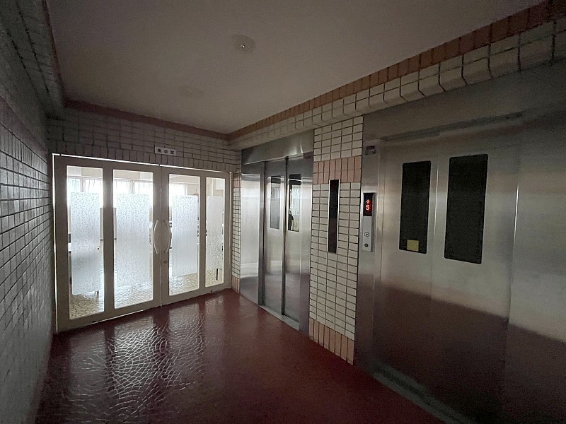 エレベーターホールと集会場入口♪