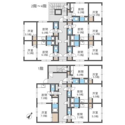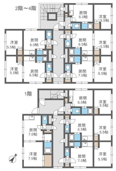 建物の階建 地上4階建 間取り 1DK×19戸 駐車場 あり 駐車場台数:5台接道状況 一方 - 西側幅11.00mの公道に12.72m接道