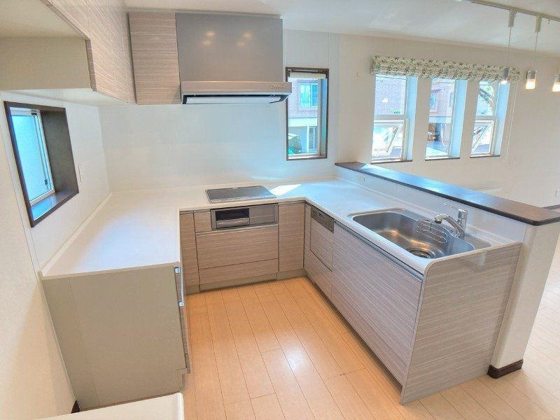 - その他:カウンターキッチン・オープンキッチン・キッチン床暖房・カードキー・クローゼット・ウォークスルークローゼット・室内物干機・複層ガラス・全室フローリング・2面採光・建築確認完了検査済証・前面棟無