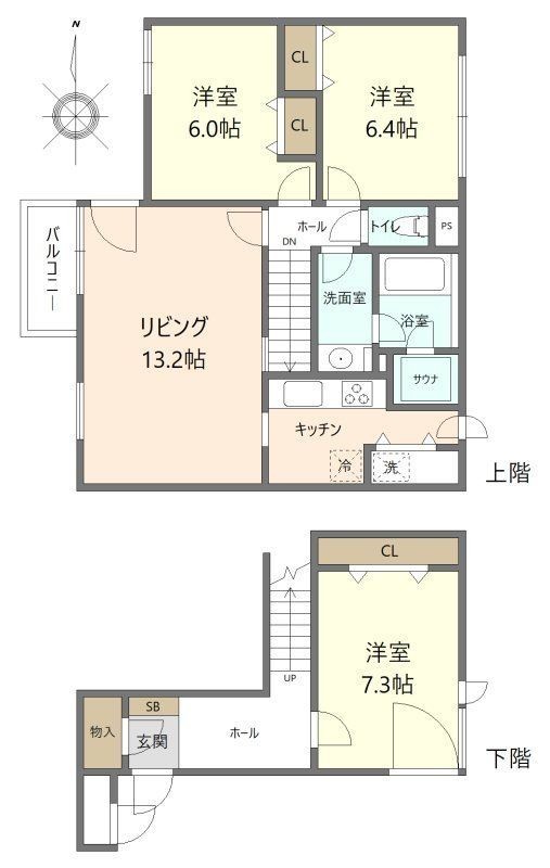 3LDK・メゾネットタイプ・西向きバルコニー