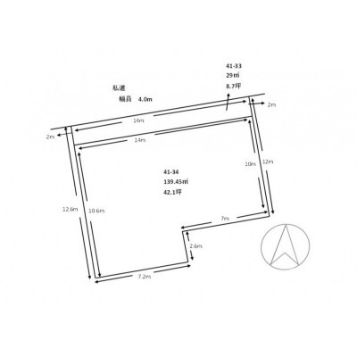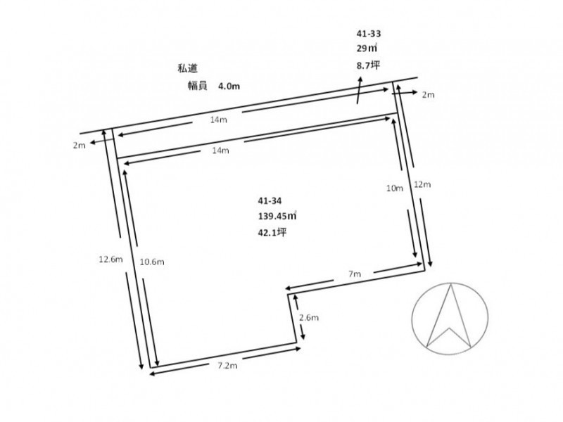 総区画数-/- 接道状況 一方 - 北側幅4.00mの私道に14.00m接道