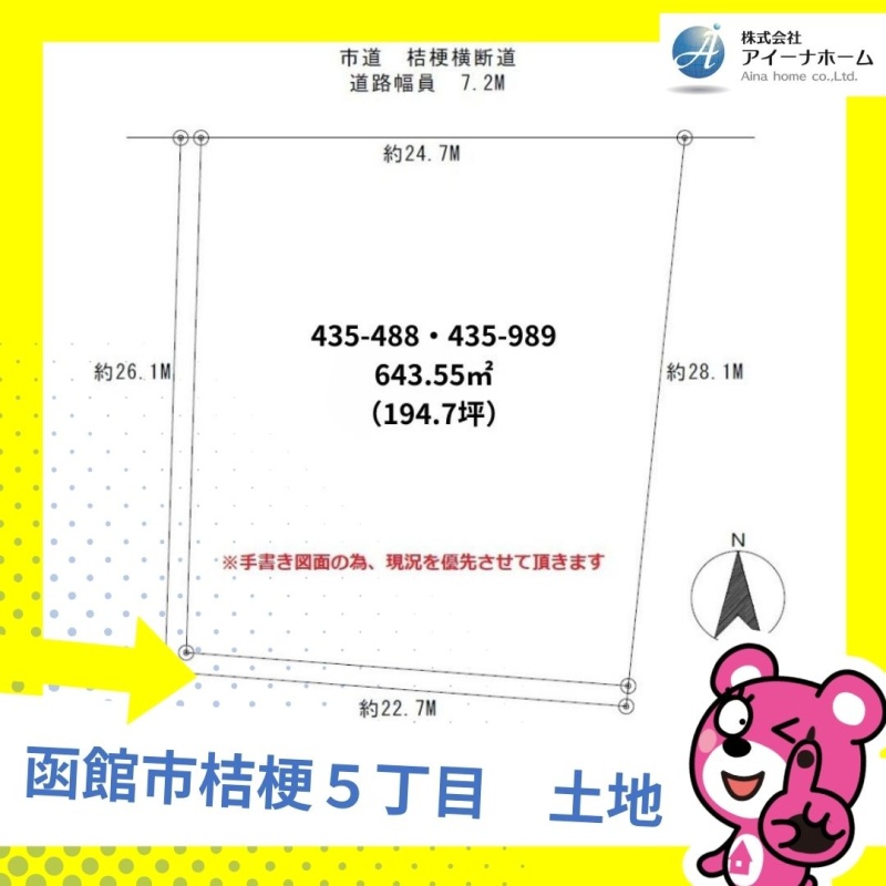 ここに注目!☆桔梗5丁目・広々194坪◎建築条件無し◎解体更地渡し◎小学校・函館新道近くです◎お気軽にお問い合わせください。