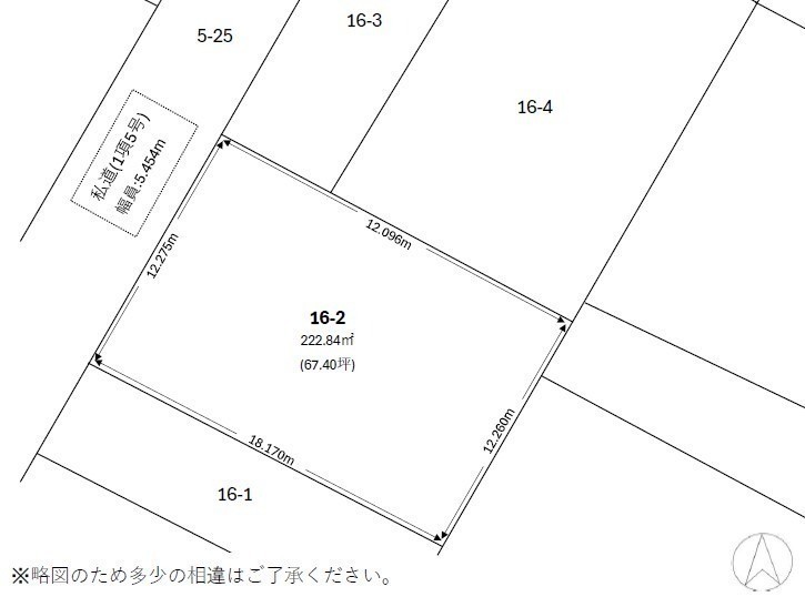 総区画数-/- 接道状況 一方 - 北西側幅5.45mの私道に12.28m接道