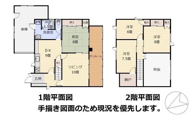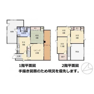 | 間取り | 4LDK1階:L10帖 DK9帖 和室8帖 / 2階:洋室6帖 洋室7.5帖 洋室8帖 |