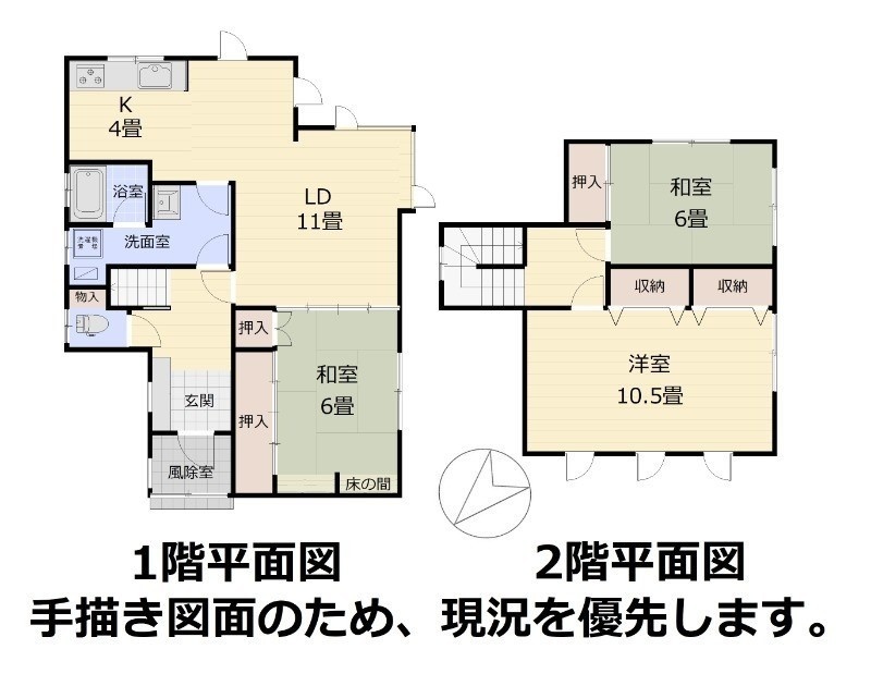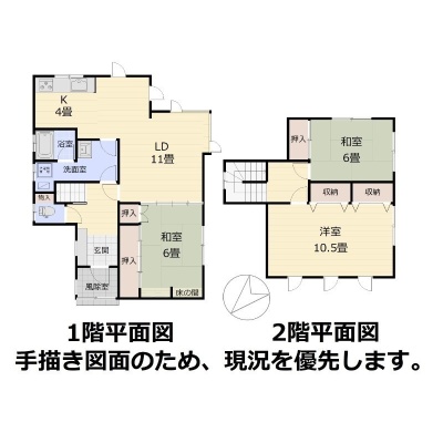 | 間取り | 3LDK1階:LD11帖 K4帖 和室6帖 / 2階:洋室10.5帖 和室6帖 |