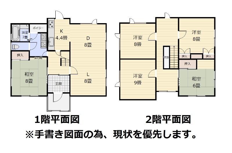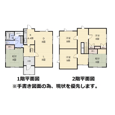 | 間取り | 5LDK1階:LDK20.4帖 和室8帖 / 2階:洋室9帖 洋室8帖 洋室8帖 和室6帖 |