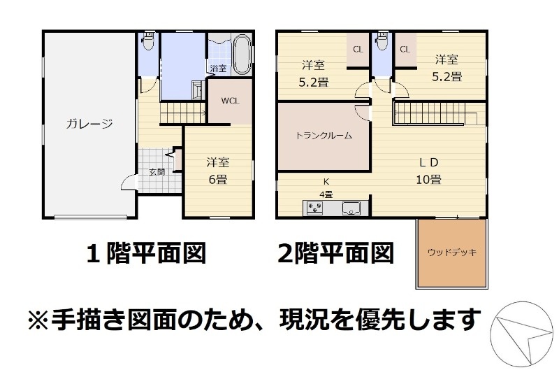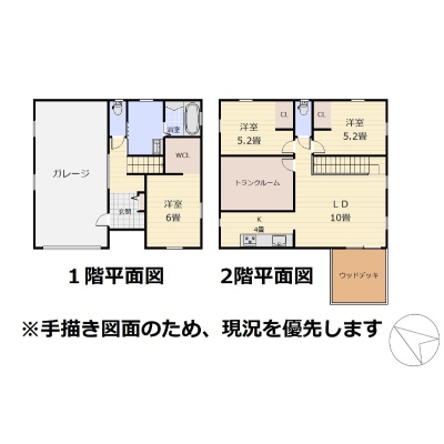 | 間取り | 3LDK1階:洋室6帖 / 2階:LD10帖 K4帖 洋室5.2帖 洋室5.2帖 S6帖 |