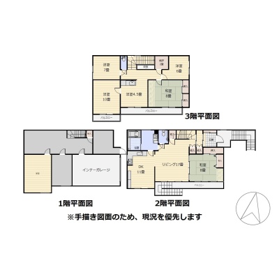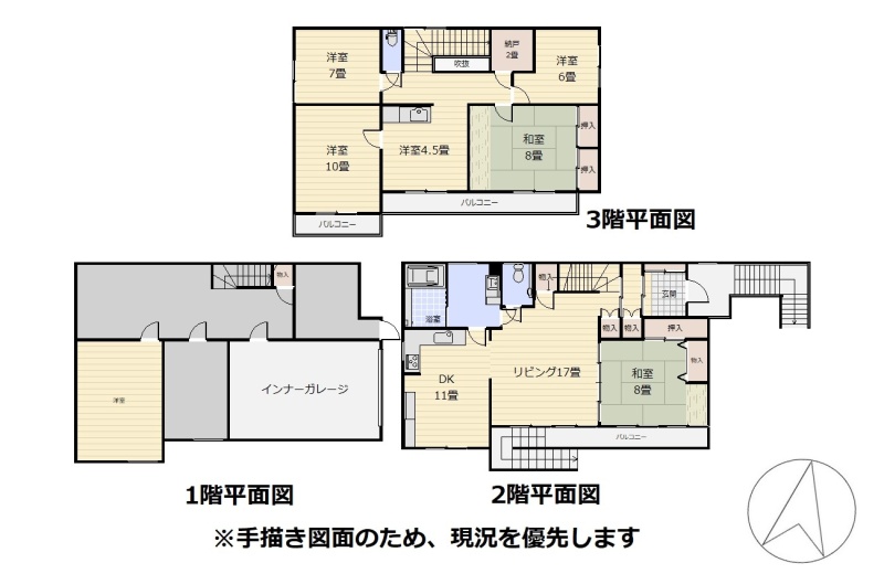 | 間取り | 5LDK2階:L17帖 DK11帖 和室8帖 / 3階:和室8帖 洋室6帖 洋室7帖 洋室10帖 |