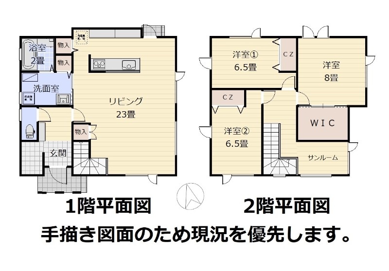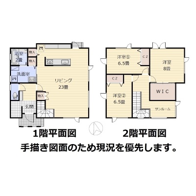 | 間取り | 3LDK1階:LDK23帖 / 2階:洋室8帖 洋室6.5帖 S3帖 |