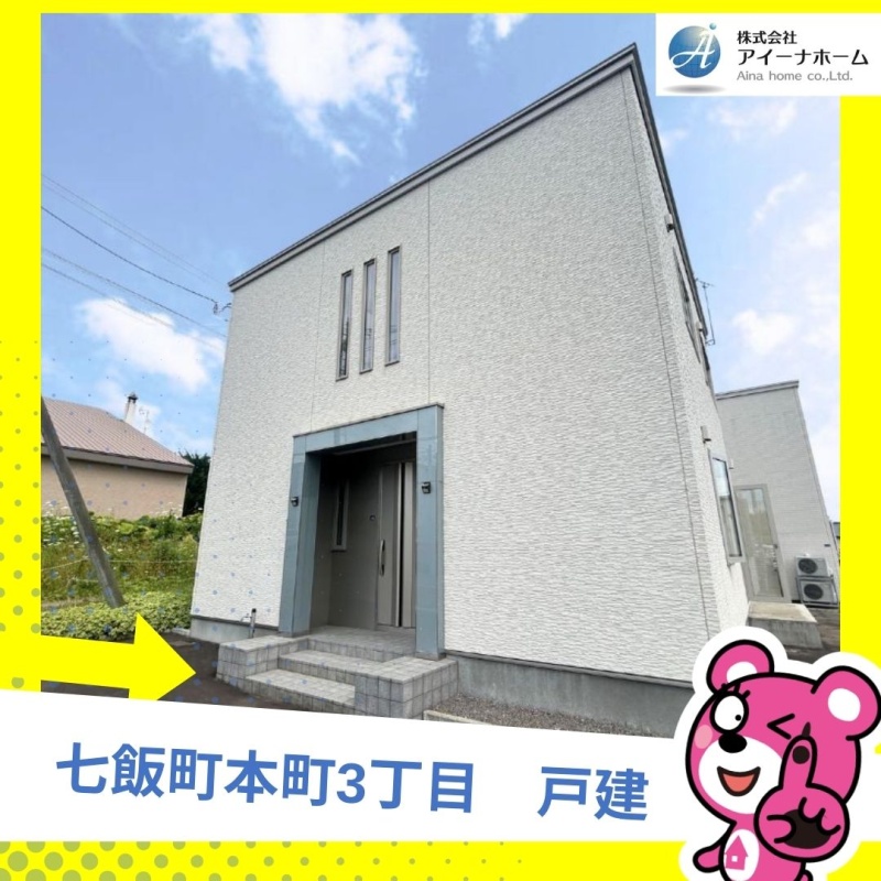 ここに注目!JR七飯駅から徒歩約3分の好立地にある、オール電化4LDK住宅。開放感たっぷりのキッチンを備えた16.5畳のLDK。2階には陽光あふれる南向きのサンルームを備え、洗濯や趣味スペースにもぴったり。駐車スペースは3台分を確保しており、来客時も安心です。土日祝日はもちろん、お仕事帰りの見学も大歓迎です♪写真とは違う実際の物件をぜひご覧ください。 弊社は建設業許可を受けておりますのでリフォーム等のご相談もご安心ください。 税金や銀行融資関係等の資金の提案もお引渡しまで全面的にサポートさせて頂きます。