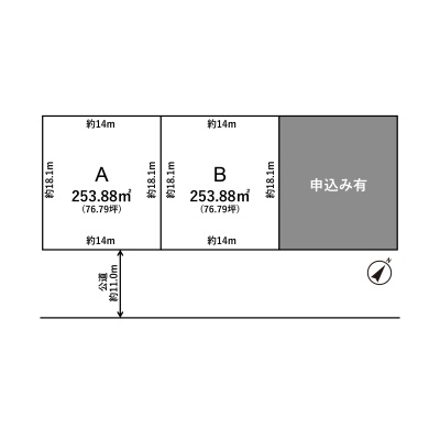 総区画数-/- 接道状況 一方 - 南東側幅11.00mの公道に14.00m接道
