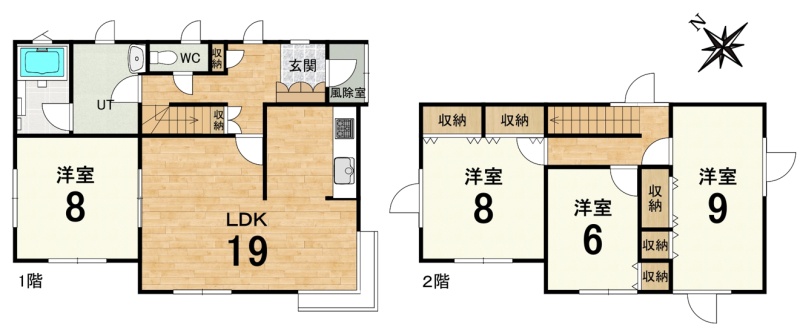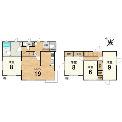 | 間取り | 4LDK1階:LDK19帖 洋室8帖 / 2階:洋室9帖 洋室8帖 洋室6帖 |