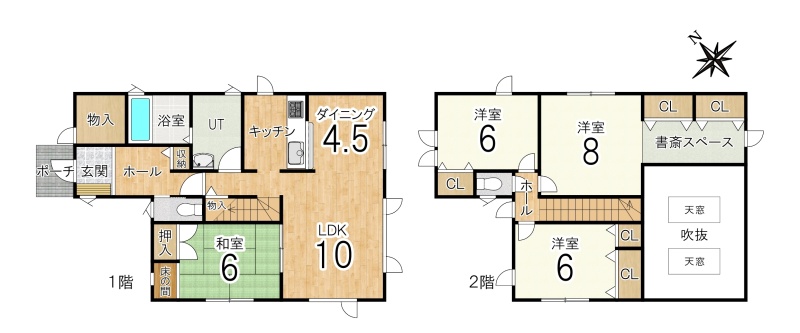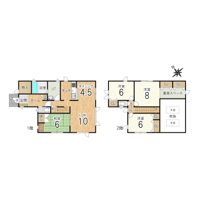 | 間取り | 4LDK1階:LDK14.5帖 和室6帖 / 2階:洋室6帖 洋室6帖 洋室8帖 |
