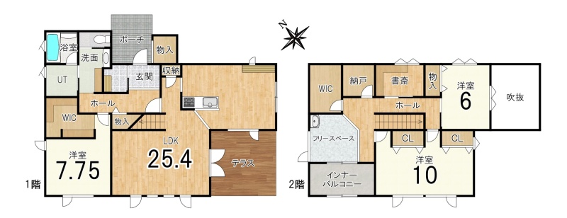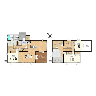 | 間取り | 3LDK1階:LDK25帖 洋室8帖 / 2階:洋室10帖 洋室6帖 |