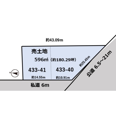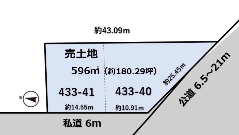 総区画数2区画/全2区画 接道状況 角地 - 西側幅6.00mの私道に25.46m接道