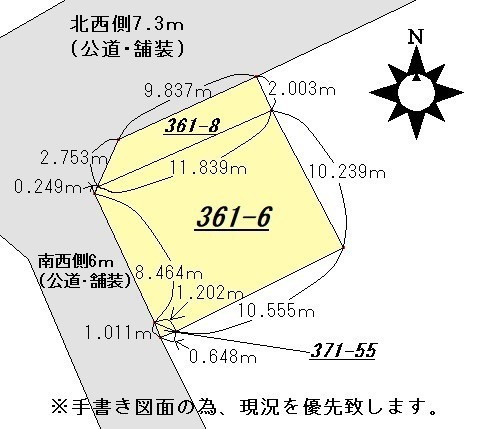 - 南西側幅6.00mの公道に9.47m接道