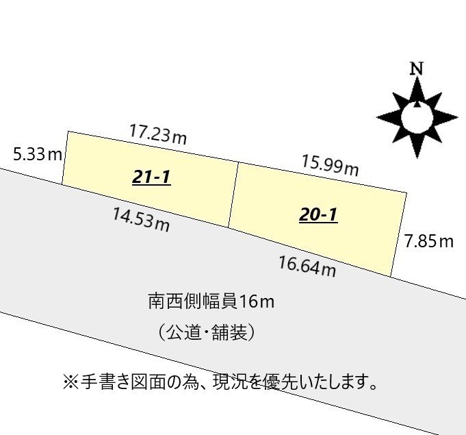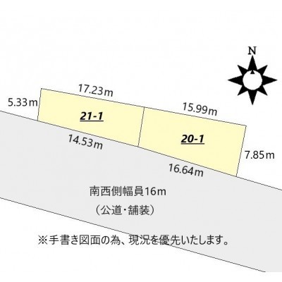 総区画数-/- 接道状況 一方 - 南側幅16.00mの公道に0.00m接道