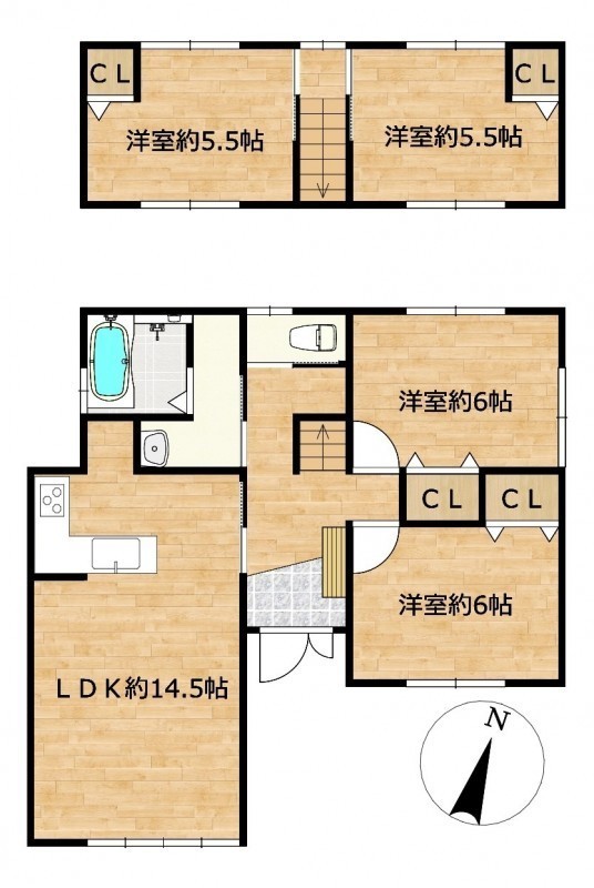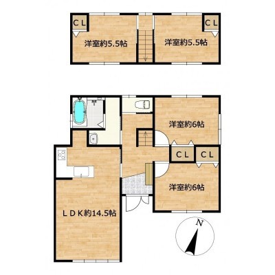 | 間取り | 4LDK1階:LDK14.5帖 洋室6帖 洋室6帖 / 2階:洋室5.5帖 洋室5.5帖 |