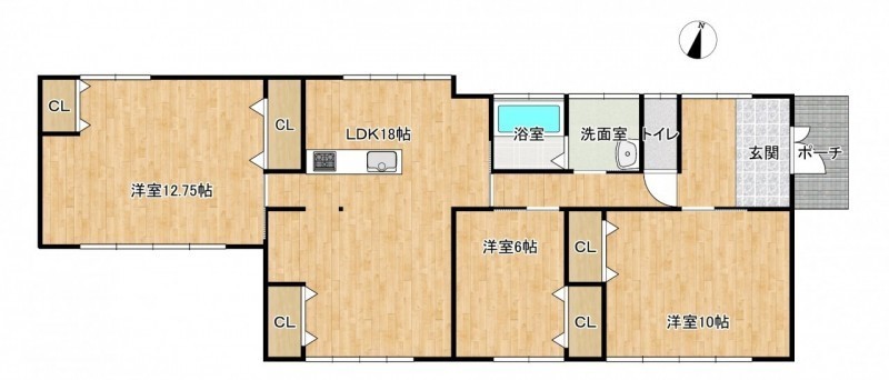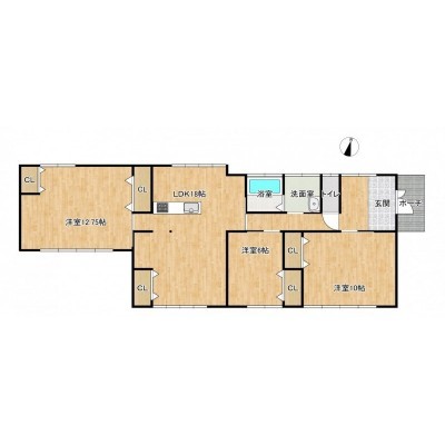 | 間取り | 3LDK1階:LDK18帖 洋室12.75帖 洋室10帖 洋室6帖 |