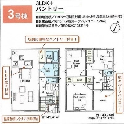 ☆仲介料不要!別府市平田 新築③号棟 2,388万円 3LDK+パントリー 駐車場3台可