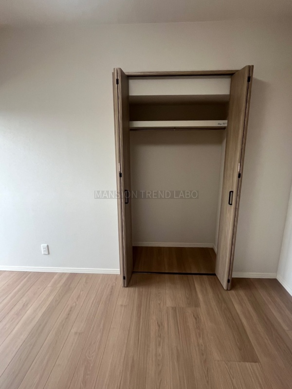 洋室5.6帖内収納力の高いクローゼット収納内部!上部収納棚・ハンガーパイプ付!